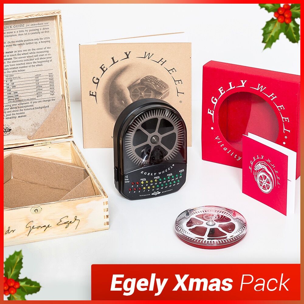The complete Egely Wheel experience. The Christmas Pack contains the original Egely Wheel, the 84-page booklet and the Vitality Indicator.